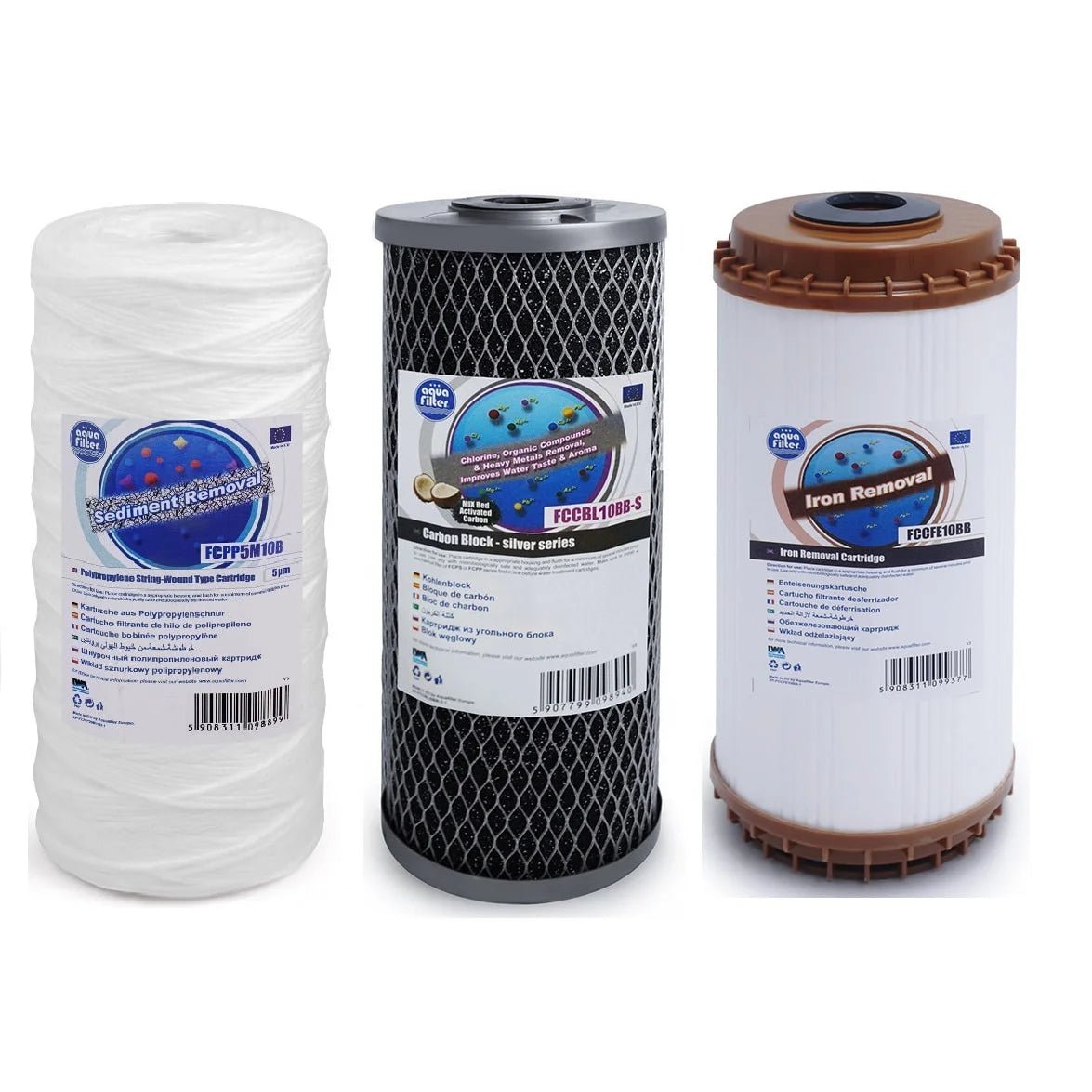 Aquafilter FCPP5M10B FCCBL10BB-S FCCFE10B Big Blue 10" replacement cartridges set