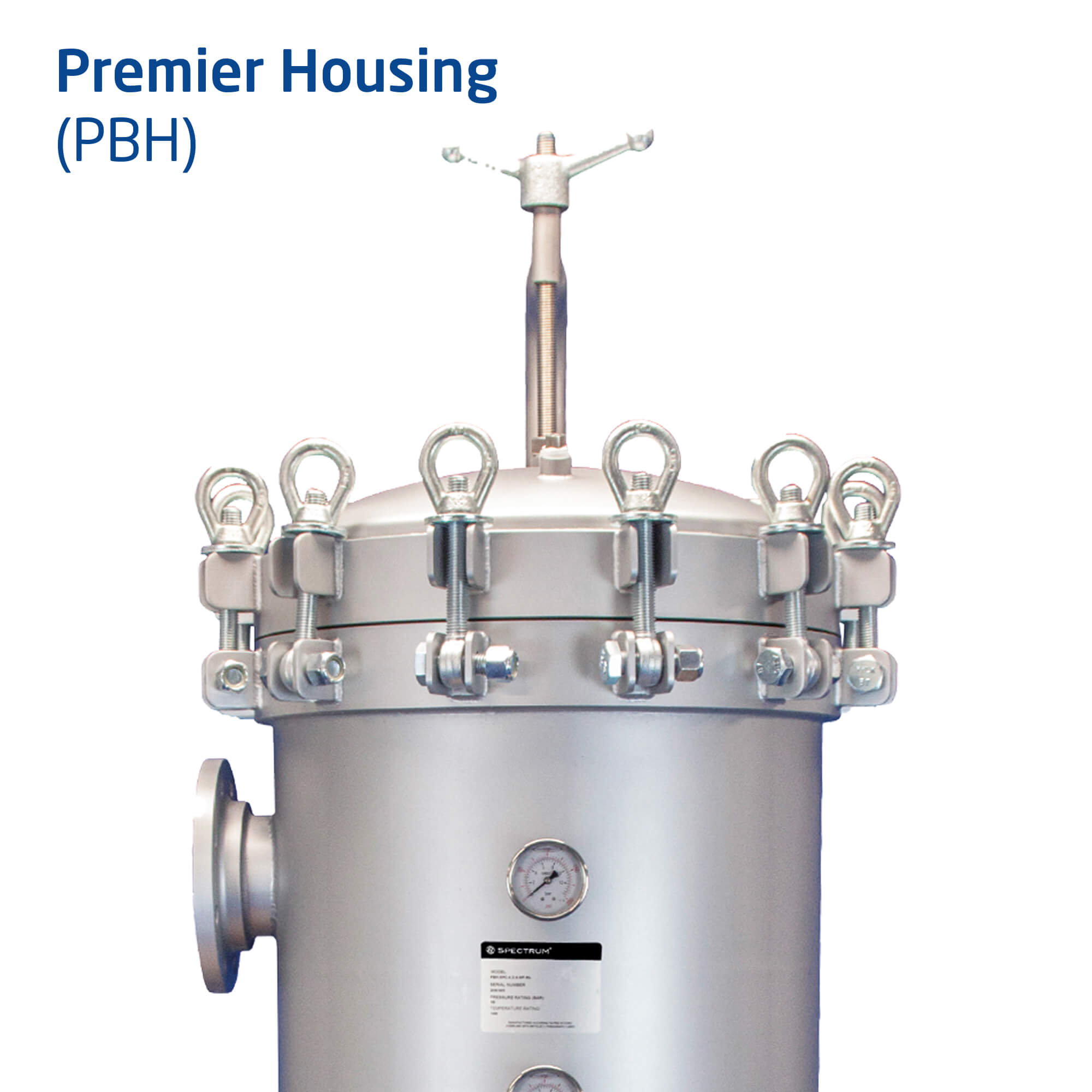 Premier housings benefit from a superior swing-bolt locking mechanism, designed to make bag changes cleaner, faster and easier for the operator.
