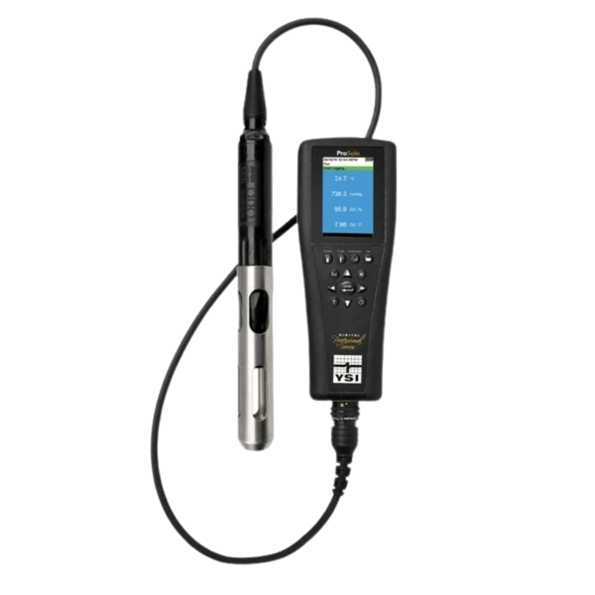The ProSolo ODO/CT kit includes the digital ProSolo handheld; an optical dissolved oxygen, conductivity, and temperature cable/probe assembly (4 or 10 meter cable length); and a soft-sided carrying case.
