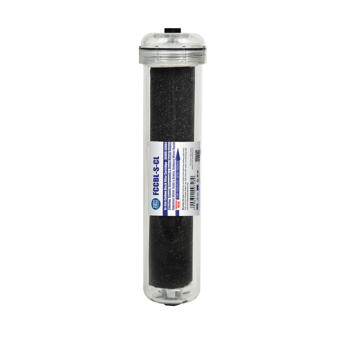 High quality in-line carbon block cartridge ("SILVER" series) made of a mixture of carbons and a special media. Removes chlorine, organic substances and certain pesticides. Improves the taste and aroma of filtered water. Cartridges reduce water hardness and the concentration of heavy metals. Available with 1/4" NPT connection. It can be installed in RO systems, "SIDE-BY-SIDE" type refrigerators and direct flow systems. FCCBL-S-CL is one of the EXCITO-CL system replaceable cartridges.