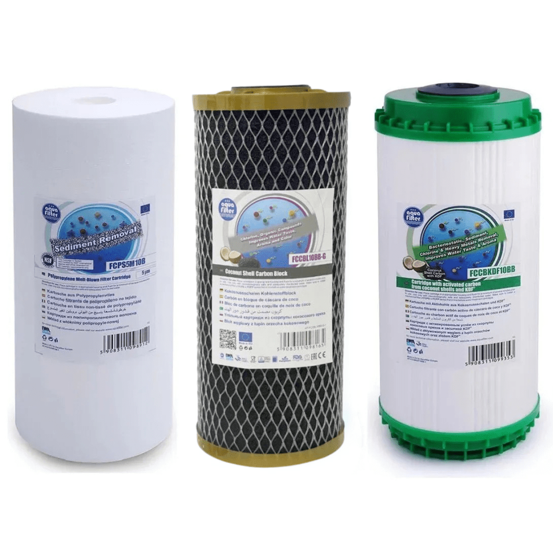 Aquafilter FCPS5M10B FCCBL10BB-S FCCBKDF10B Big Blue 10" replacement cartridges set